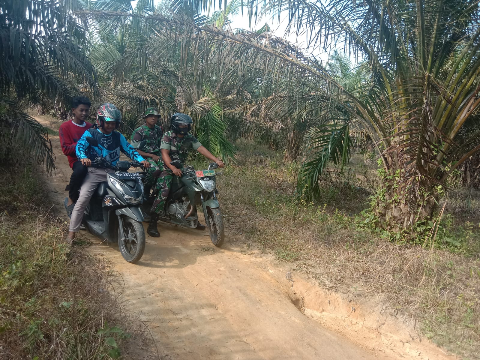 SIAK- Babinsa Koramil 01/Siak Kodim 0322/Siak bersama masyarakat Kampung Benteng Hilir melaksanakan patroli cegah karhutla di lahan yang rawan terbakar pada Minggu, 2/10/ 2022.