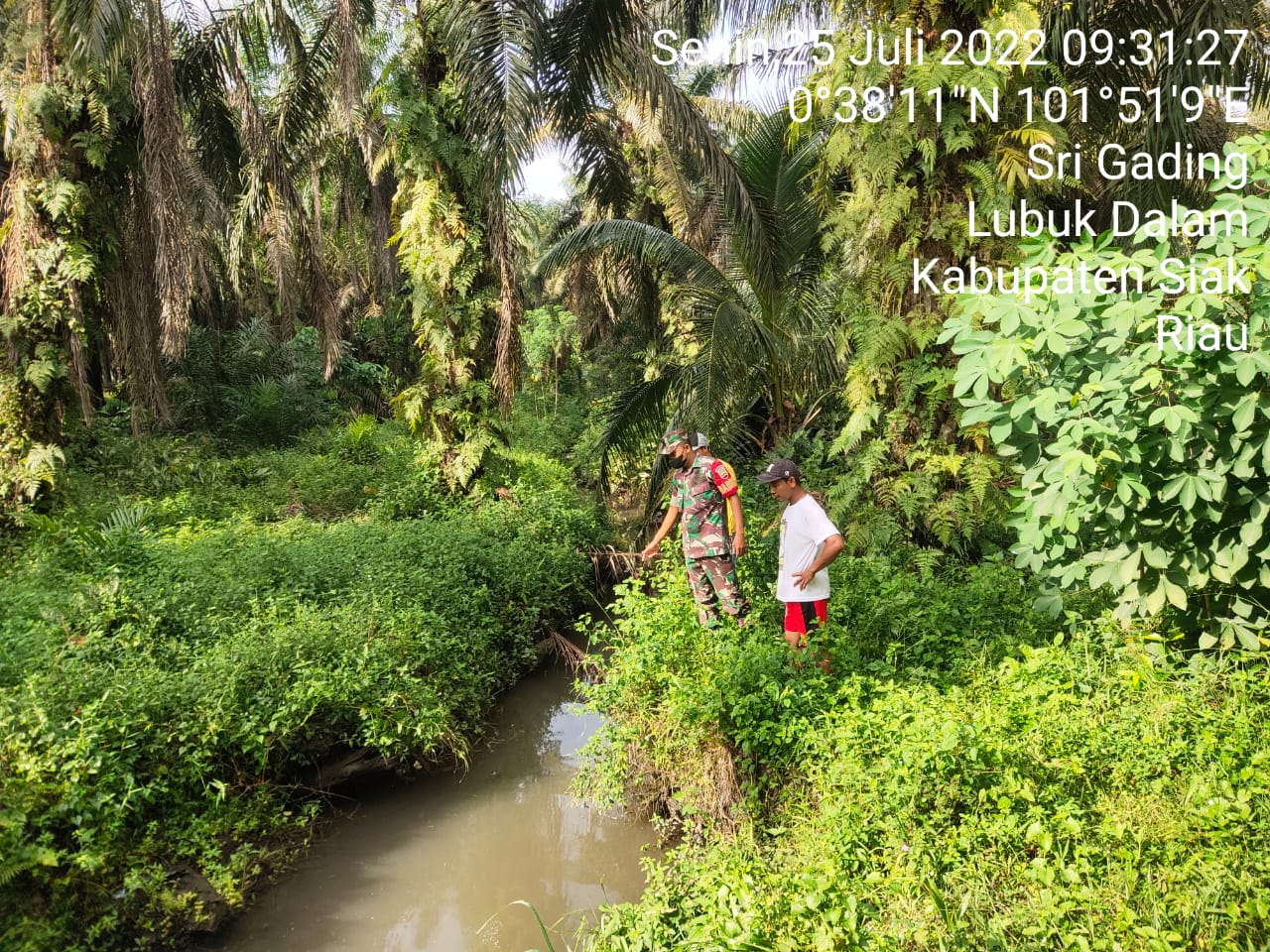 SIAK- Babinsa Koramil 01/Siak, jajaran Kodim 0322/Siak bersama Masyarakat Peduli Api(MPA) melaksanakan kegiatan Patroli Karhutla di Kampung Sri Gading Kecamatan Lubuk Dalam Kabupaten Siak.Senin, 25 Juli 2022.