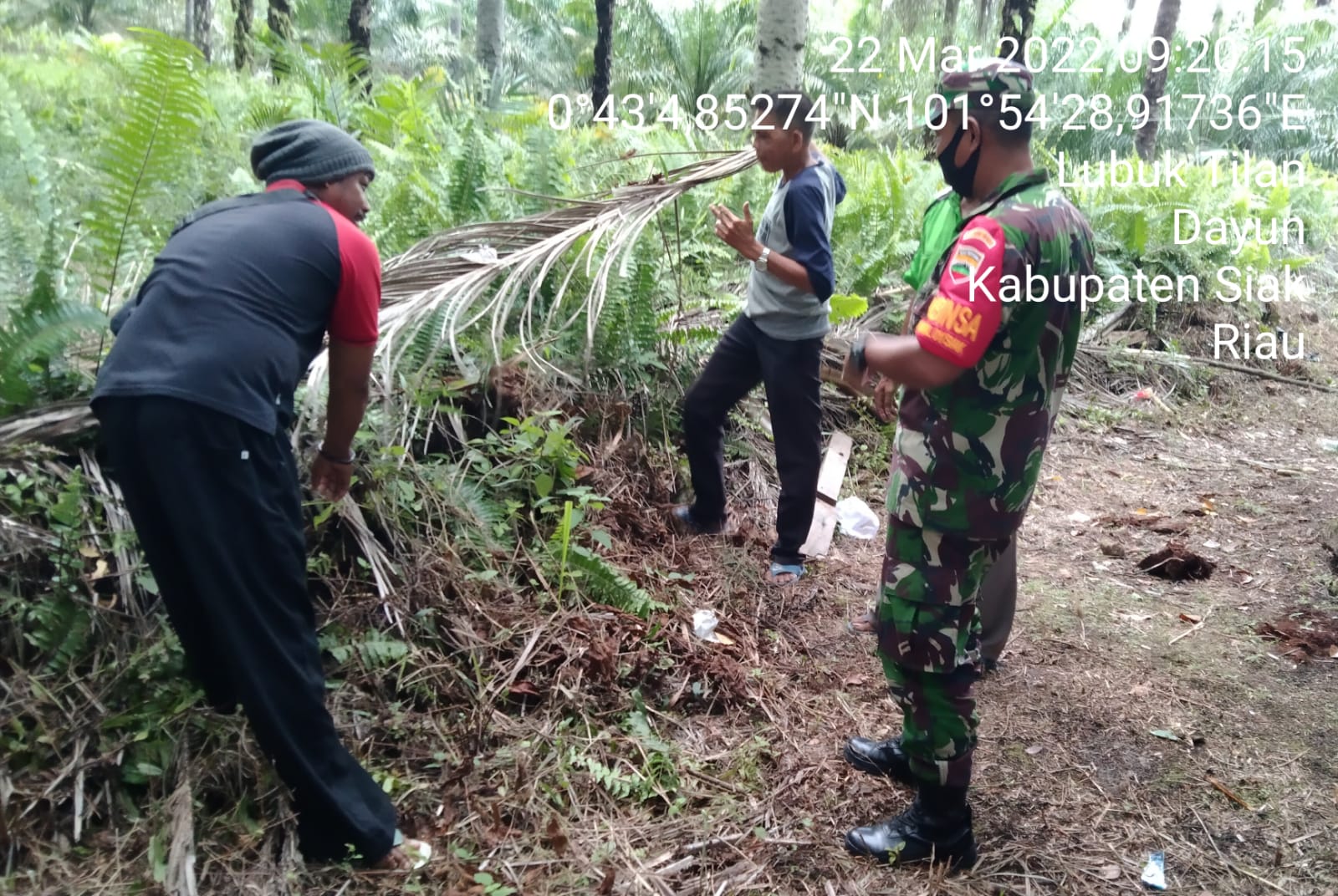 SIAK- Babinsa Koramil 01/Siak dari jajaran Kodim 0322/Siak Koptu Erwin bersama Masyarakat Peduli Api (MPA) melaksanakan kegiatan Patroli Karhutla di Kapung Lubuk Tilan Kecamatan Dayun Kabupaten Siak. Selasa,22 Maret 2022.