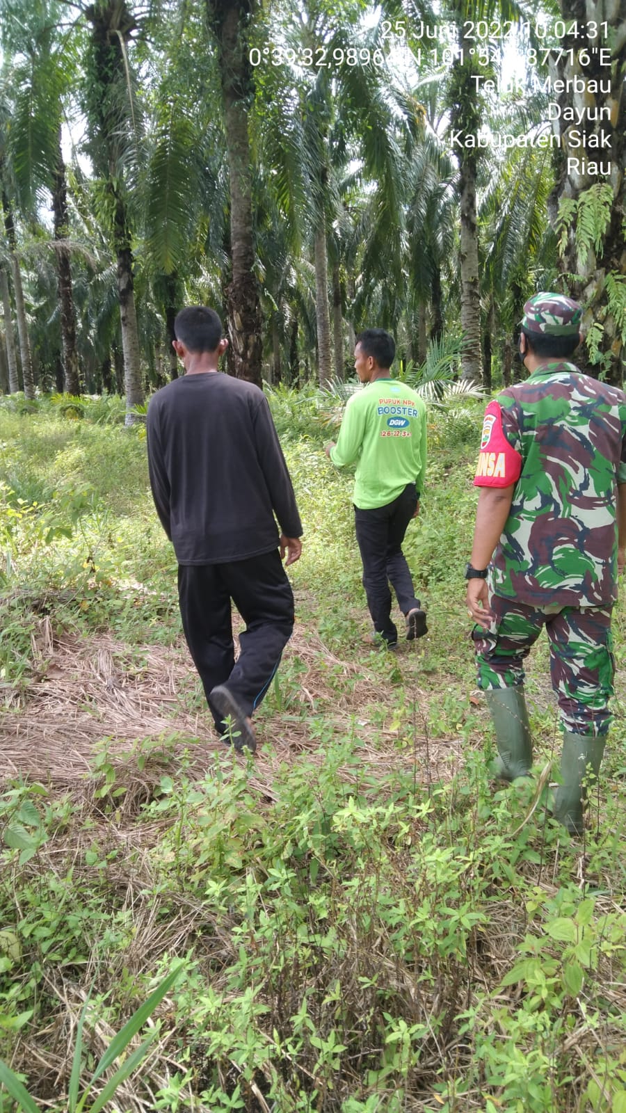 SIAK- Babinsa Koramil 01/Siak jajaran Kodim 0322/Siak Koptu Erwin melaksanakan kegiatan Patroli Karhutla di Kampung Teluk Merbai Kecamatan Dayun Kabupaten Siak. Sabtu,25 Juni 2022.