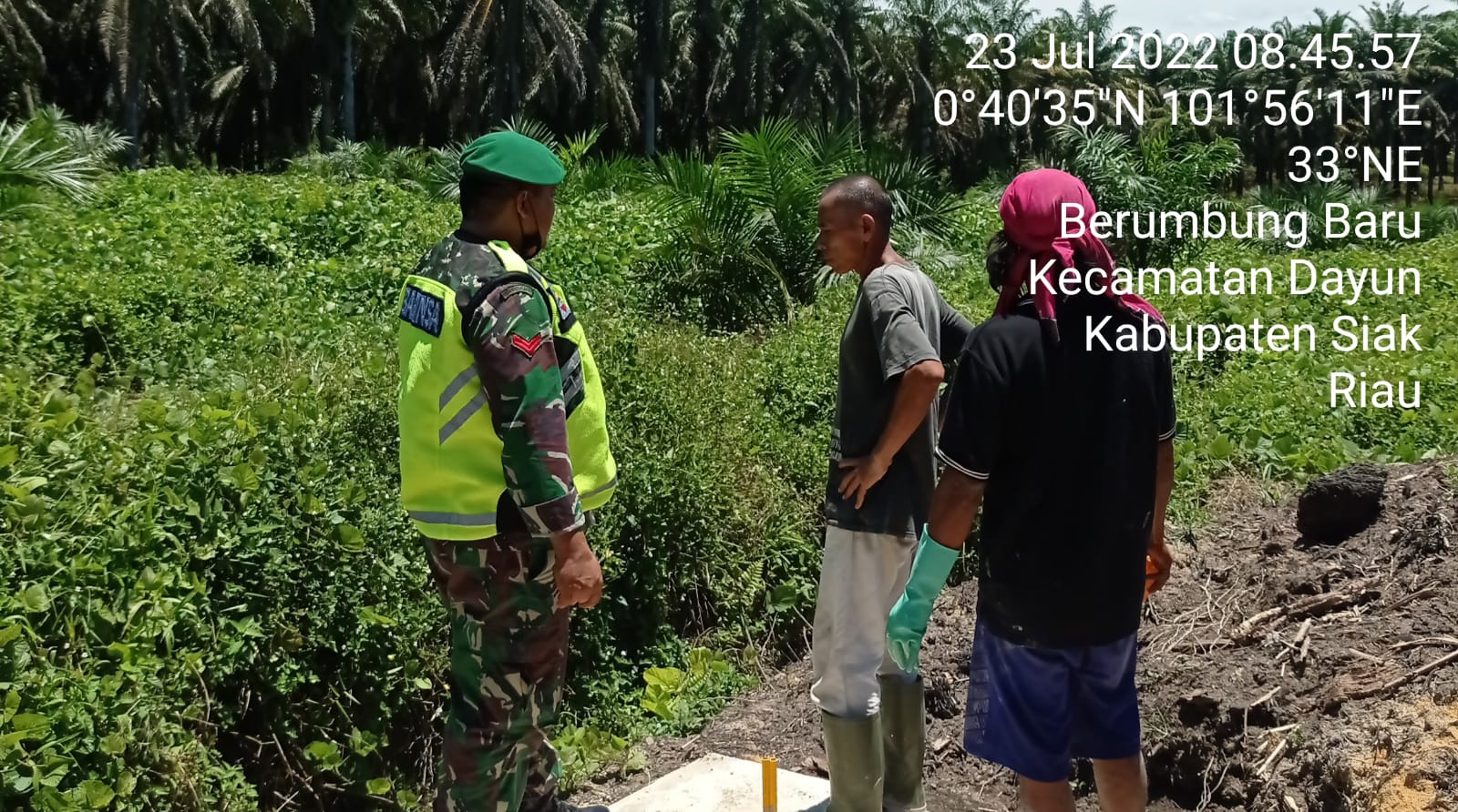 SIAK- Babinsa Koramil 01/Siak jajaran Kodim 0322/Siak Koptu Syamsualam Kateru bersama Masyarakat Peduli Api(MPA) terus melaksanakan kegiatan Patroli Karhutla di Kampung Berumbung Baru Kecamatan Dayun Kabupaten Siak. Sabtu ,23 Juli 2022.