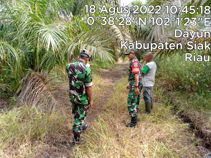 SIAK- Babinsa Koramil 01/Siak jajaran Kodim 0322/Siak Serma Zamzami bersama Masyarakat Peduli Api(MPA) terus melaksanakan kegiatan Patroli Karhutla di RT 15/RW 07 kampung Dayun Kecamatan Dayun Kabupaten Siak.Kamis, 18/8/2022.