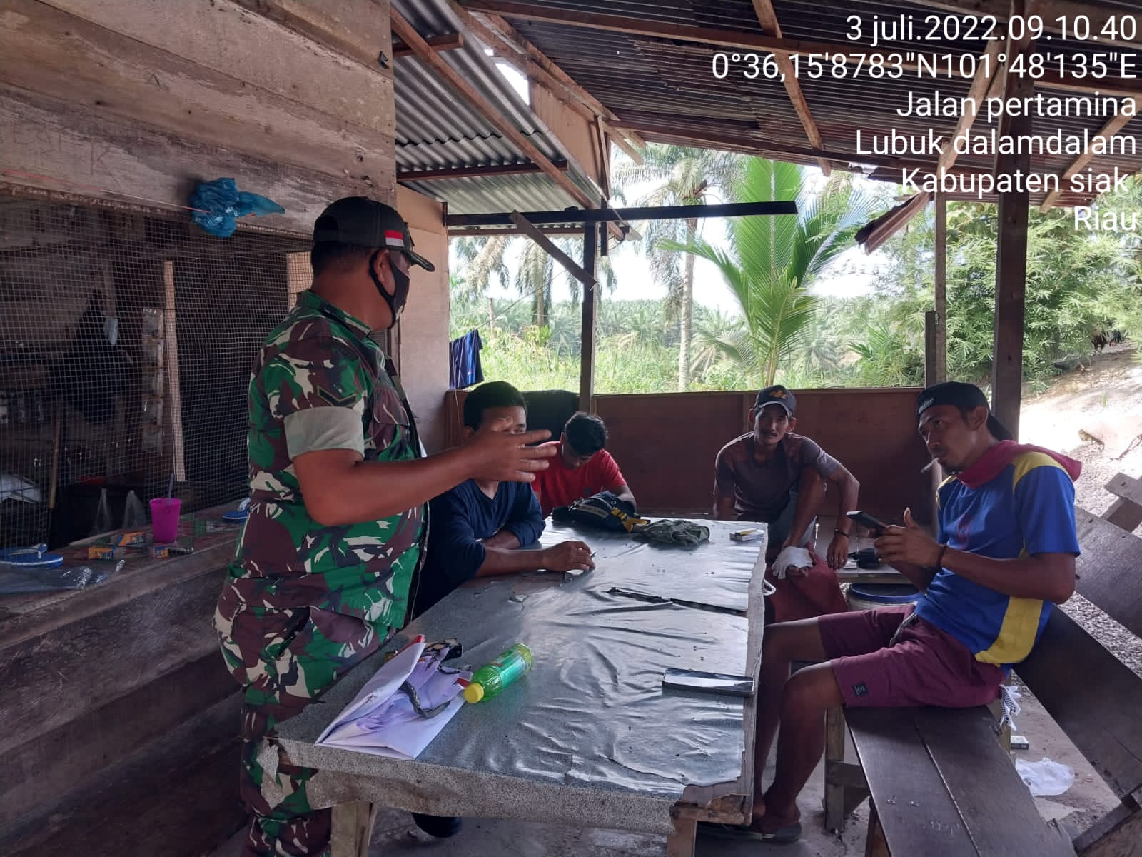 SIAK- Babinsa Koramil 01/Siak jajaran Kodim 0322/Siak Serda Ronal Tambah melaksanakan kagiatan Komunikasi Sosial(Komsos)dan himbauan protkes kepada Masyarakat Kampung Lubuk Dalam Kecamatan Siak Kabupaten Siak pada hari Sabtu.(3 Juli 2022)