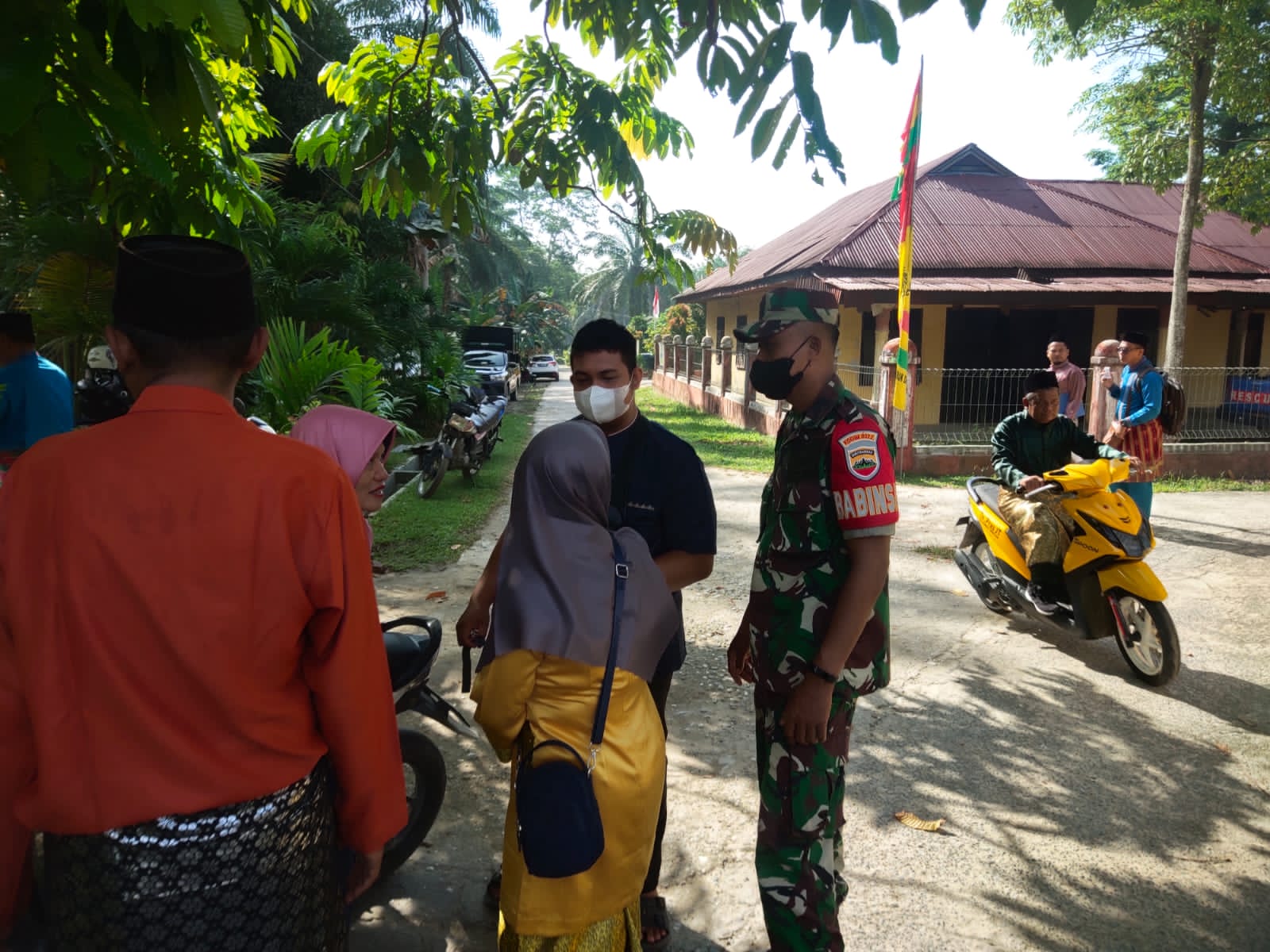 SIAK- Babinsa Koramil 01/Siak.Kodim 0322/Siak Sertu Warto melaksanakan kagiatan Komsos dan himbauan protkes kepada Masyarakat Kampung Sri Gading Kecamatn Lubuk Dalam Kabupaten Siak. Jumat,03 Juni 2022.