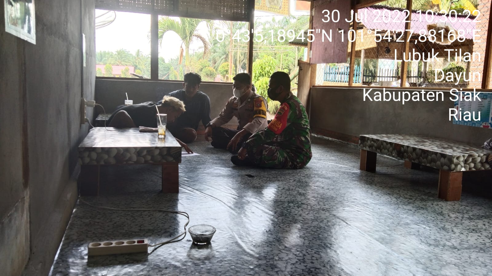 Siak- Babinsa Koramil 01/Siak Kodim 0322/Siak Koptu Erwin kagiatan komsos dan himbauan protkes kepada Masyarakat Kp.Merangkai Kecamatan Dayun Kabupaten Siak.Sabtu, 30 Juli 2022.