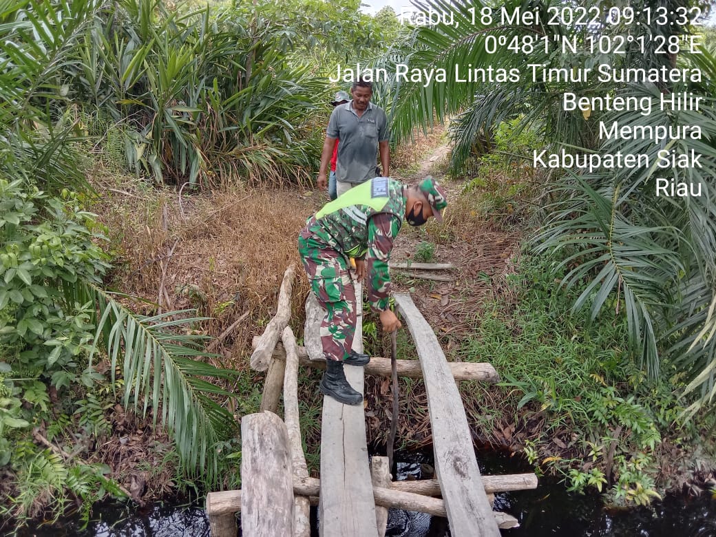 SIAK- Babinsa Koramil 01/Siak jajaran Kodim 0322/Siak Serda Ariyanto bersama Manggala Agni dan MPA melaksanakan kegiatan Patroli Karhutla di Kampung Benteng Hilir Kecamatan Mempura Kabupaten Siak.Rabu,18 Mei 2022.