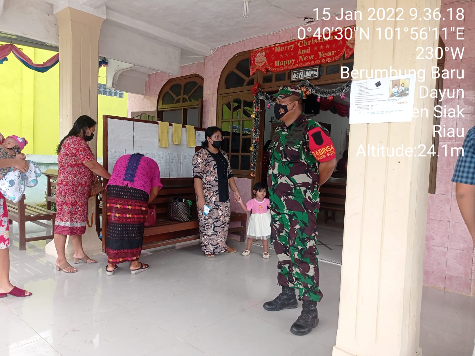 SIAK- Angota Babinsa Koramil 01/Siak Kodim 0322/Siak Koptu Syamsu Alam K melaksanakan kegiatan penegakan prokes Covid-19 kepada masyarakat di Kampung Berumbung Baru, Kecamatan Dayun Kabupateng Siak. Saptu15 Januari 2022.