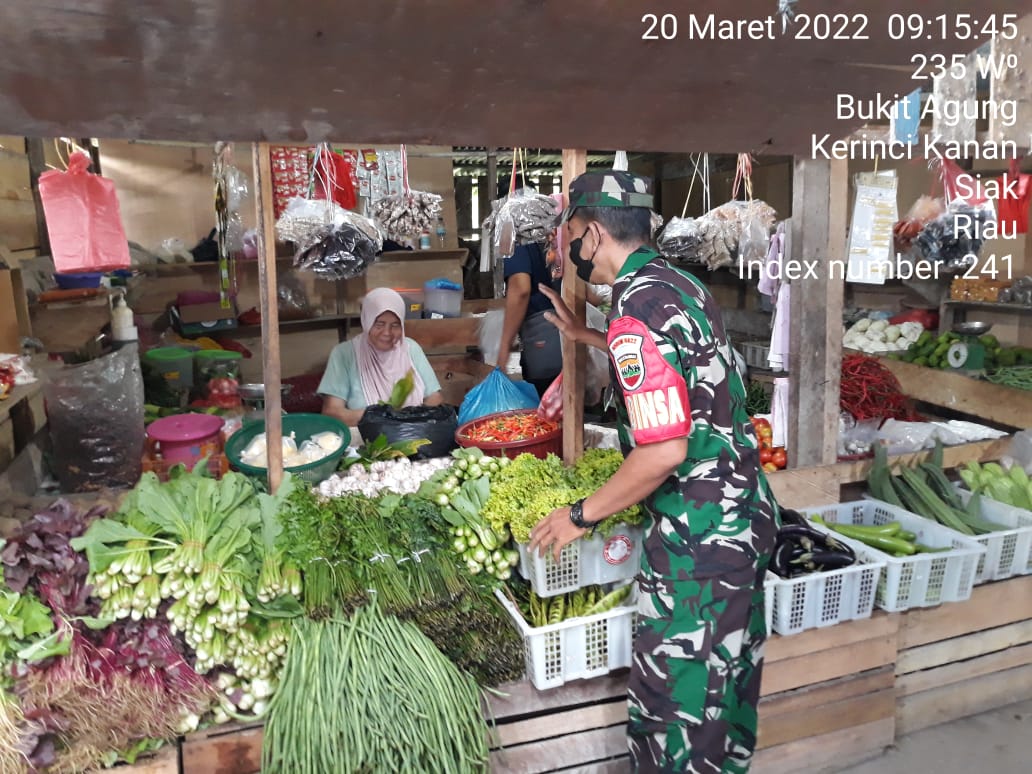SIAK- Babinsa Koramil 01/Siak jajaran Kodim 0322/Siak Serka Junaidi Silalahi melaksanakan kegiatan Protkes menghimbau kepada masyarakat Kampung Bukit Agung Kecamatan Kerincin Kanan Kabupaten Siak. Minggu,20 Maret 2022.