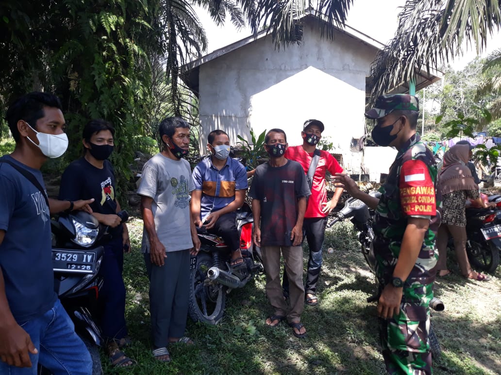 SIAK- Babinsa Koramil 01/Siak jajaran Kodim 0322/Siak Serka Junaidi Silalahi melaksanakan kagiatan komunikasi sosial (komsos) dan himbauan protokol kesehatan kepada Masyarakat Kampung Kerinci Kanan, Kecamatan Kerinci Kanan, Kabupaten Siak. Jumat,04 Maret 2022.