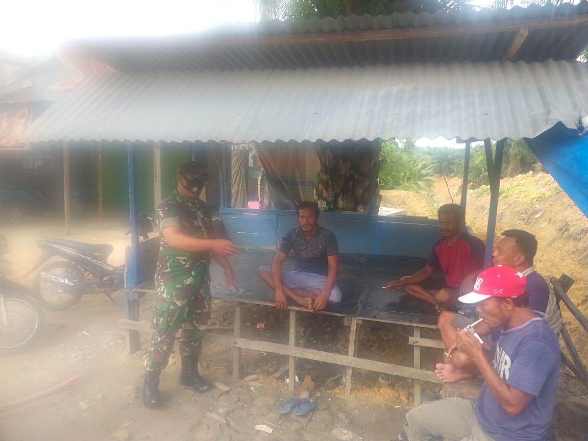 Kegitan himbauan Protokol Kesehatan ini, Babinsa mendatangi warung dan kedai kedai yang ada di Kampung Empang Baru.