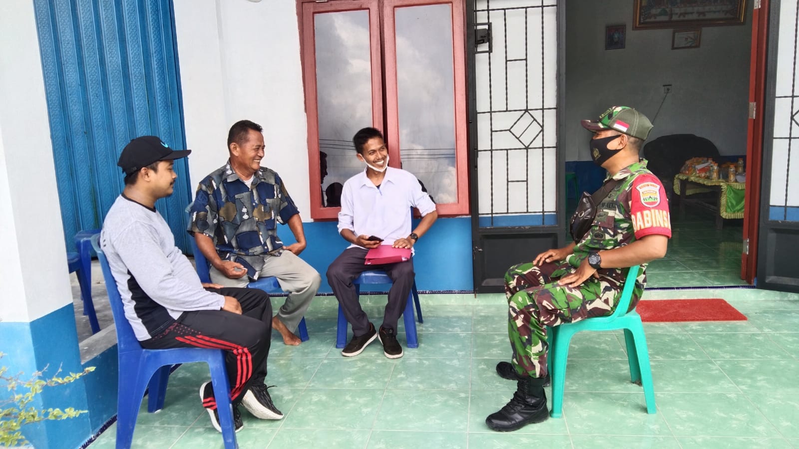 SIAK- Babinsa Koramil 01/Siak jajaran Kodim 0322/Siak Koptu Erwin melaksanakan kagiatan Komunikasi Sosial(komsos) dan himbauan Protokol Kesehatan (protkes) kepada masyarakaten Kampung Teluk Merbau Kecamatan Dayun Kabupaten Siak. Minggu,03 April 2022.