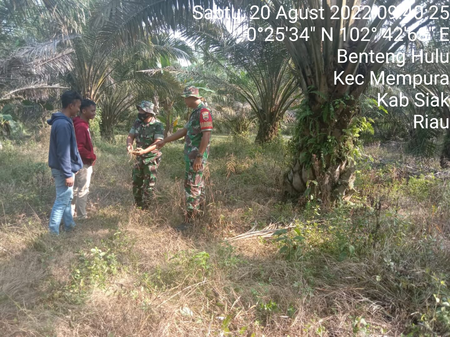 “Kita Tidak bosan-bosannya menyampaikan sosialisasi tentang bahaya kebakaran hutan dan lahan kepada masyarakat sekitar, agar masyarakat tidak membakar lahan secara sembarangan , karena apabila masyarakat sengaja membakar lahan maka akan ada sanksi hukum yang berlaku bagi masyarakat yang membakar.”ujar Babinsa.