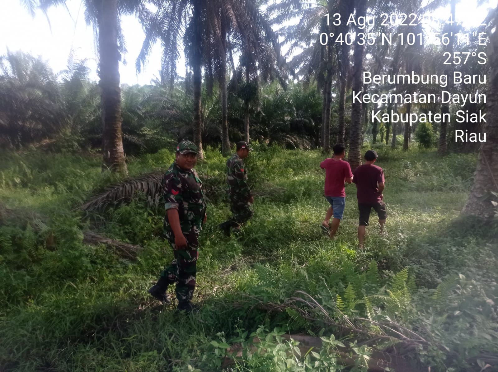 SIAK- Babinsa Koramil 01/Siak, Koptu Syamsualam K melaksanakan Patroli Karhutla di Kampung Berumbung Baru RT 12/RW 03 Dusun Kampung Tengah, Kecamatan Dayun Kabupaten Siak. Sabtu, 13 Agustus 2022.