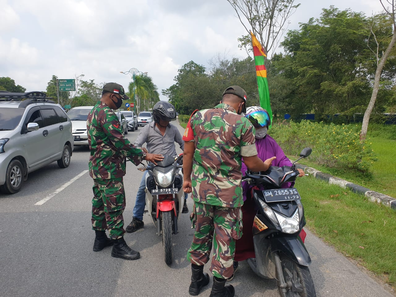 SIAK- Babinsa Koramil 01/Siak Serda Melaksanakan Pendisiplinan Prokes dan Pendampingan Vaksin. Pendisiplinan prokes kepada masyarakat ini, Babinsa Koramil 01/Siak Serda Arianto melaksanakan kegiatan pendisiplinan Prokes kepada masyarakat di depan POS Dishub Jembatan Tengku Agung Sultan Latifah, Kelurahan Sungai Mempura, Kecamatan Siak, Kabupaten Siak. Selasa 09 Agustus 2022 Pukul 09.00 Wib.
