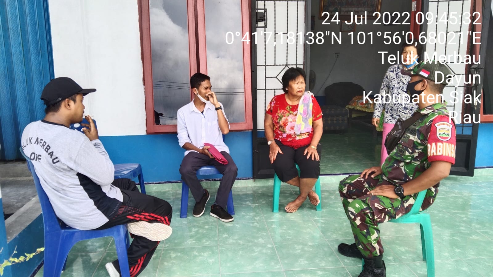 SIAK- Babinsa Koramil 01/Siak jajaran Kodim 0322/Siak melakukan Komunikasi Sosial (Komsos) dengan warga binaan, di Kampung Teluk Merbau Kecamatan Dayun Kabupaten Siak Minggu,24 Juli 2022.