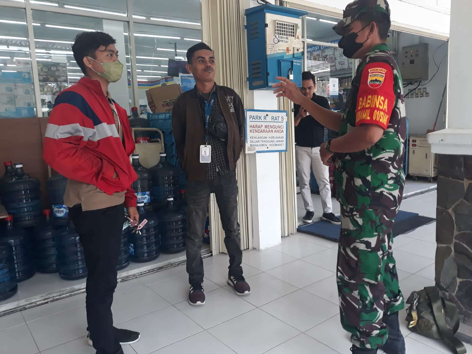 SIAK- Babinsa Koramil 01/Siak Kodim 0322/siak Serka Junaidi Silalahi melaksanakan kegiatan pendisiplinan Protokol Kesehatan kepada masyarakat yang melaksanakan krumunan di kampung Jati Mulya Kecamatan Kerinci Kanan, Kabupaten Siak, Sabtu, 20 Agustus 2022.