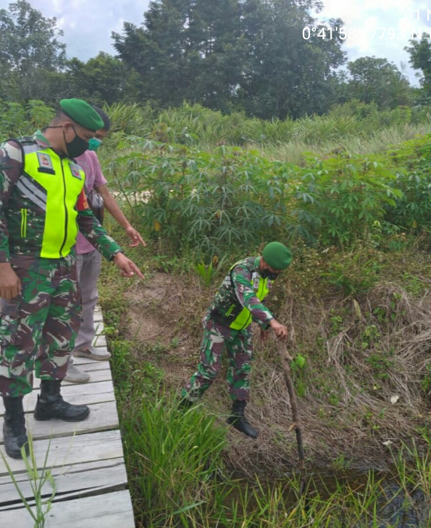 SIAK – Babinsa Kampung Berumbung Baru Koramil 03/Siak Kodim 0303/Bengkalis Serda Novri bersama MPA melaksanakan Patroli Karhutla di Kampung Berumbun Baru Kecamatan Dayun Kabupaten Siak, Senin (02/11/2020).