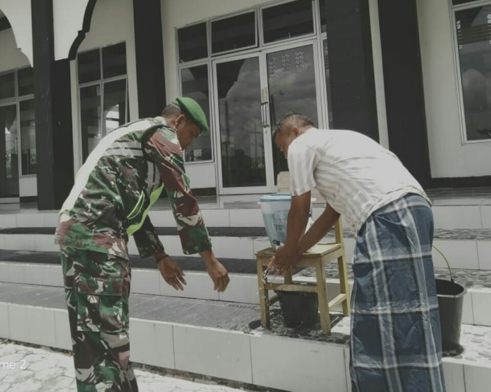 Saat melaksanakan tugasnya, Serda B. Nasution melihat ada warga yang ingin memasuki masjid, dengan sabar Babinsa memintanya untuk mencuci tangan terlebih dahulu sebelum memasuki area Masjid. Ia juga menghimbau jema’ah masjid, “Agar selalu menjaga kebersihan di mulai dari diri sendiri selalu ikut serta memberikan imbauan kepada warga,keluarga agar selalu melakukan 3 M yaitu, selalu Menggunakan Masker, Menjaga Jarak, serta Menjaga Kebersihan dengan selalu mencuci Tangan dengan sabun” kata Babinsa.(*).