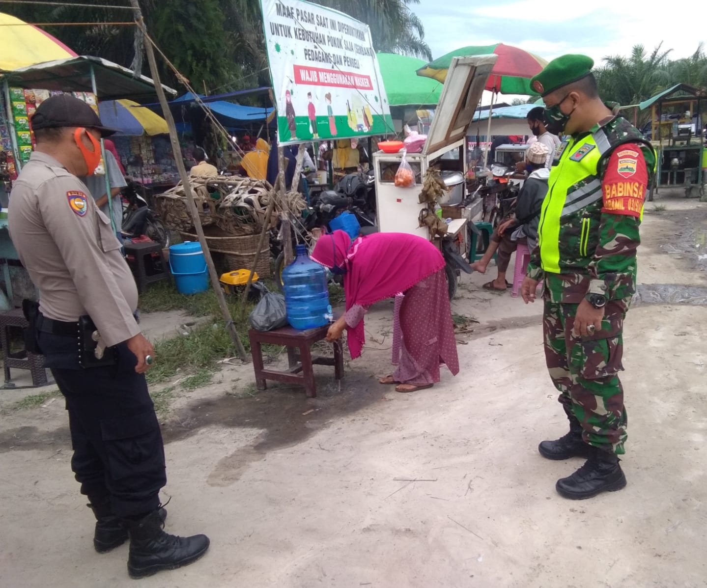 Untuk itu, Babinsa Koramil 03/Siak bersama Bhabinkamtibmas Polsek Kerinci Kanan, melaksanakan pendisiplinan dan memberikan himbauan kepada pedagang dan pengunjung, agar selalu menerapkan Prokes 5M.