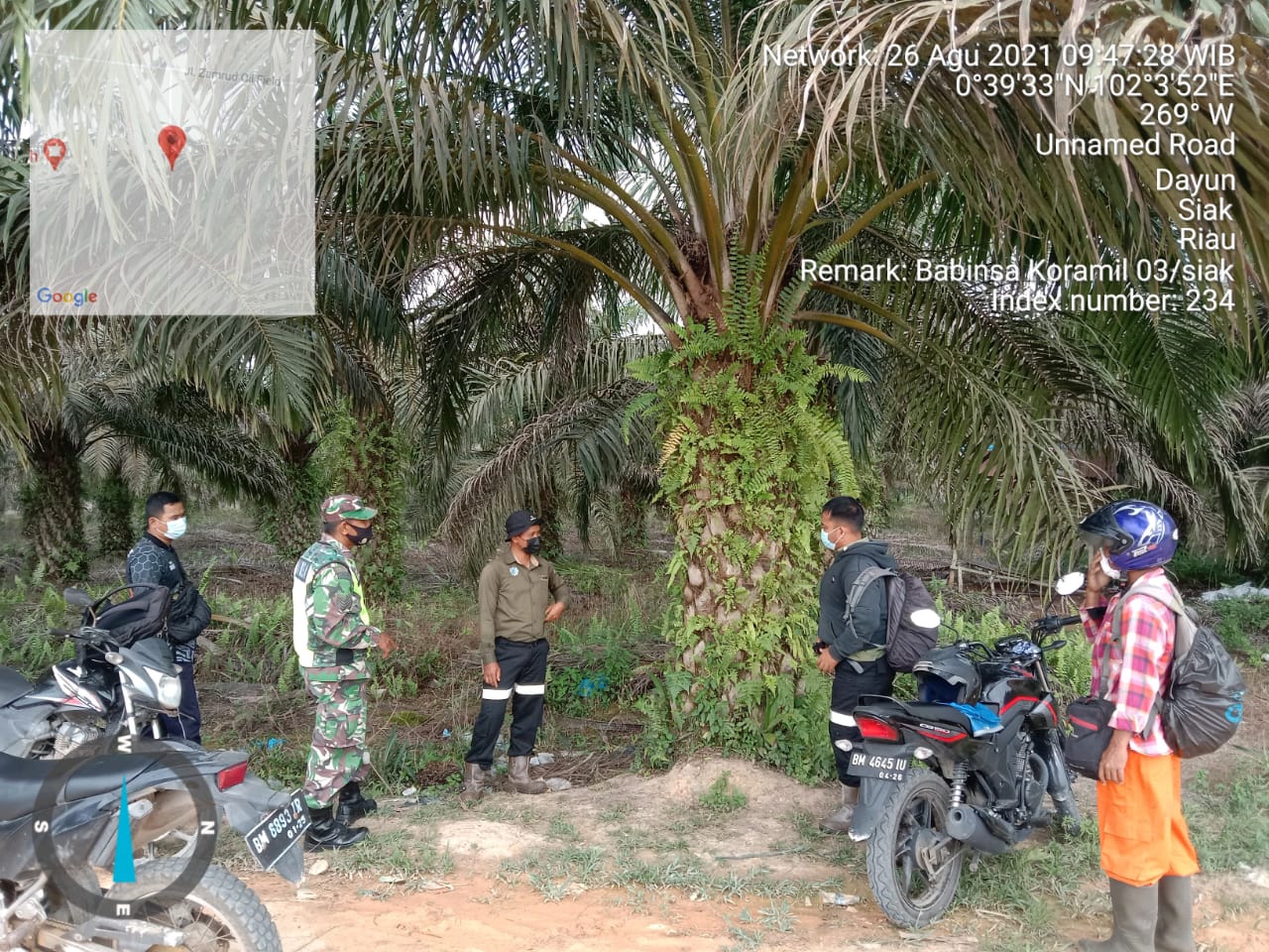 Dayun – Dalam rangka mencegah terjadinya kebakaran hutan dan lahan (Karhutla), Tim Patroli Terpadu yang terdiri dari Babinsa Koramil 03/Siak bersama MPA, melaksanakan patroli pencegahan karhutlla di wilayah Kecamatan Dayun, Kabupaten Siak, Kamis (26/08/2021).