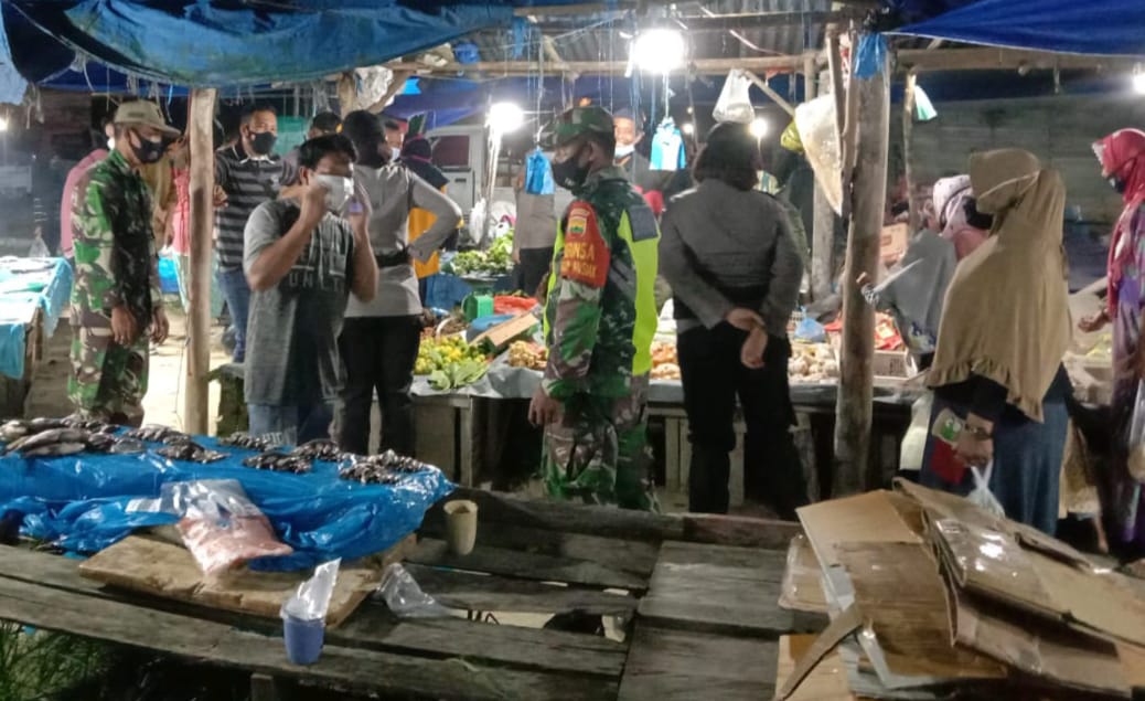 Dayun – Untuk mencegah penyebaran covid-19 Anggota Babinsa jajaran Koramil 03/Siak wilayah Kecamatan Dayun bersama Polsek Siak melaksaksanakan patroli pendisiplinan kepada masyarakat serta himbauan, yang melaksanakan aktifitas jual beli di pasar kaget di Jl. Lintas Perawang Buton Km 79 Kampung Dayun Kecamatan Dayun Kabupaten Siak, Sabtu (17/07/2021) Malam.
