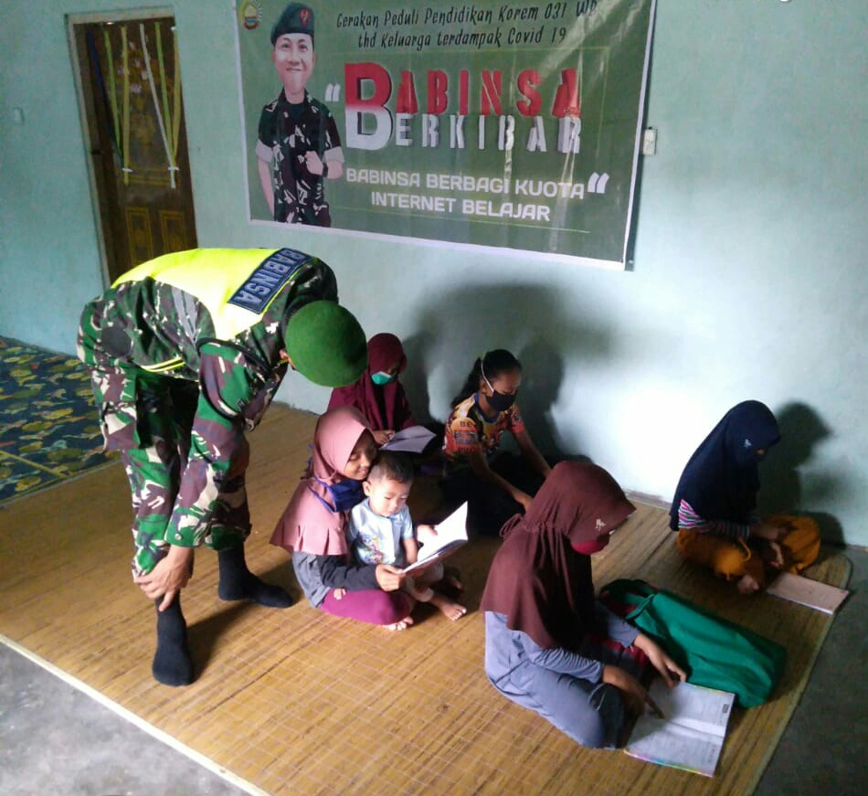 Dalam melaksanakan pembinaan wikayah binaan Babinsa Koramil 03/Siak Serda Ulong Ritonga melakukan pendampingan pembelajaran daring bagi Siswa dan siswi SD yang kurang mampu di wilayah Kampung Kerinci Kanan Kecamatan Kerinci Kanan Kabupaten Siak, Rabu (21/10/2020).