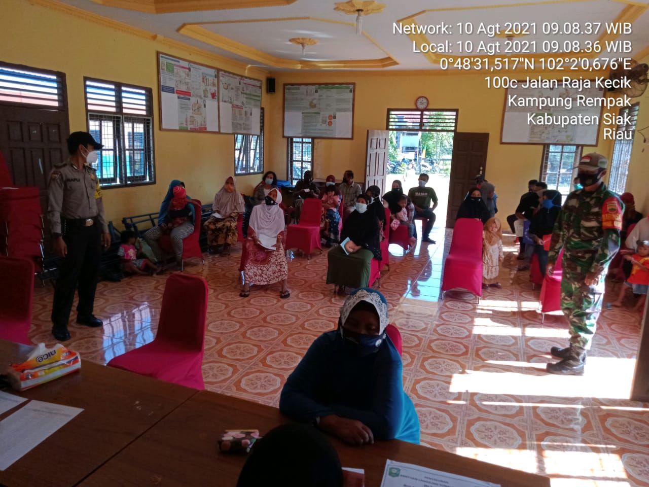 Dayun – Babinsa Koramil 03/Siak Kodim 0303/Bengkalis Serda Ponidi bersama Bhabinkamtibmas melaksanakan Pengawalan dan Pendampingan Penyaluran Bantuan Langsung Tunai (BLT) Dana Kampung kepada warga yang kurang mampu di Aula Kantor Penghulu Kampung Pangkalan Makmur Kecamatan Dayun Kabupaten Siak, Selasa (10/08/2021).