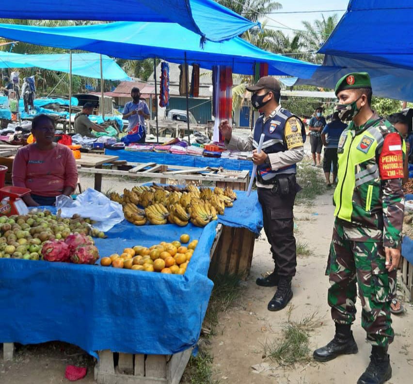 Babinsa Koramil 03/Siak selalu mengimbau kepada masyarakat selalu mematuhi protokol kesehatan di pusat keramaian. Imbauan disampaikan Sertu Junaidi Silalahi Babinsa Koramil 03/Siak ini karena masih adanya para pembeli dan pedagang yang tidak menggunakan masker. “Mereka menganggap biasa kalau tidak mengunakan masker,” ucap Babinsa.