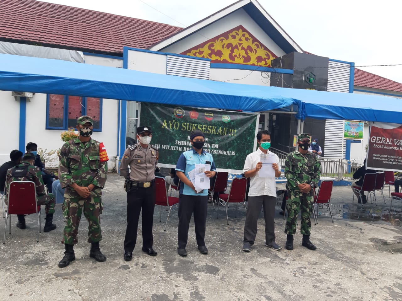 Siak Sri Indrapura – Personel Koramil 03/Siak Serka Joni selaku Babinsa Kelurahan Kampung Rempak melaksanakan monitoring terhadap kegiatan Vaksinasi yang dilaksanakan oleh UPT Puskesmas Siak, Selasa (07/09/2021).