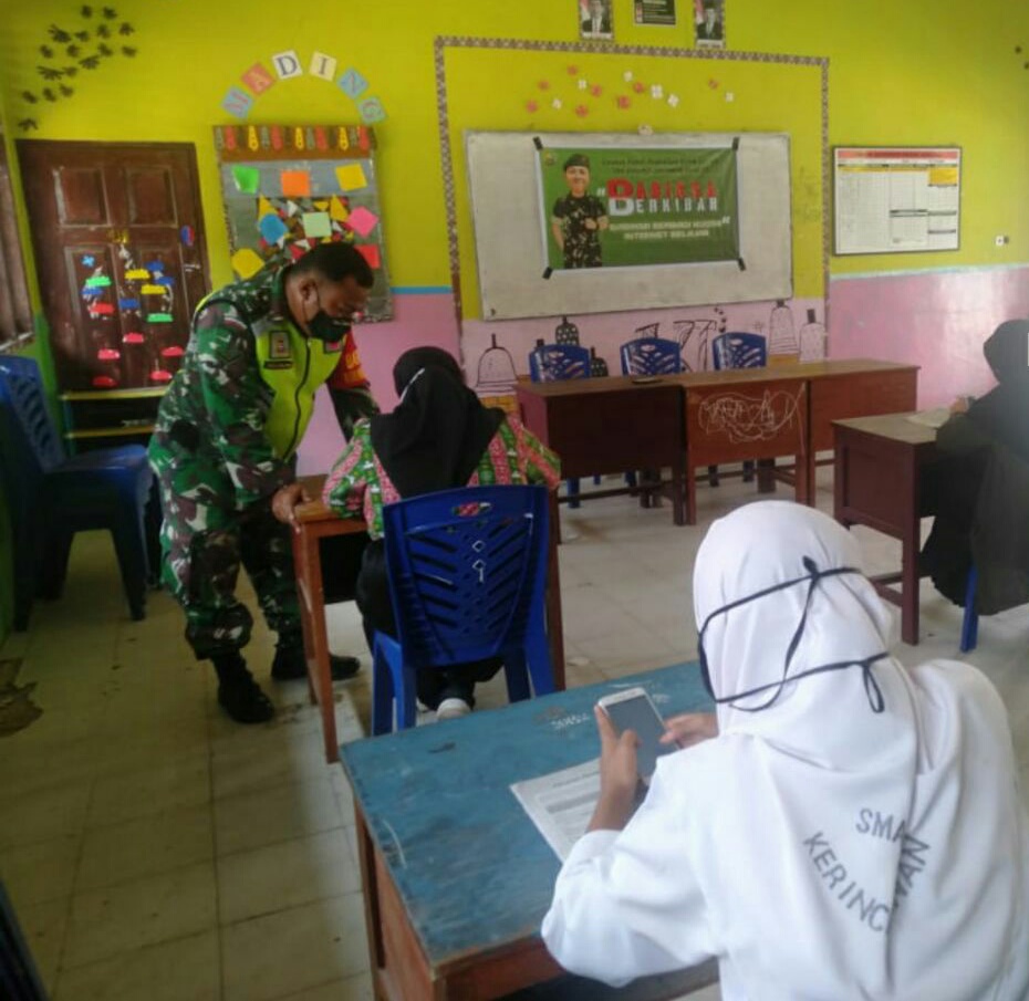 Dengan gunakan Hp pribadi nya, Babinsa Serda Rudy A. Panjaitan Aktifkan hotspot guna membantu anak-anak Siswa/i SMP yang masih kesulitan kuota internet untuk mengikuti proses pembelajaran berbasis internet atau (Daring).