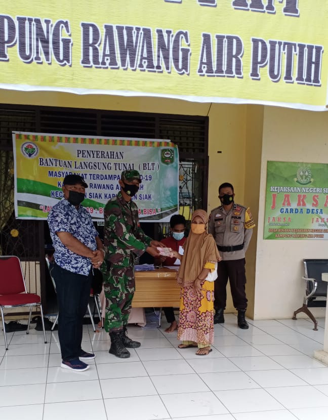Babinsa Kampung Rawang Air Putih Serda Novel HG mengatakan bahwa Penyaluran Bantuan Langsung Tunai (BLT) Dana Kampung tersebut dengan jumlah warga penerima sebanyak 56 KK dengan setiap warga masing-masing mendapatkan Bantuan Langsung Tunai (BLT) Rp 1.800.000, terhitung mulai bulan Maret s.d Agustus 2021.