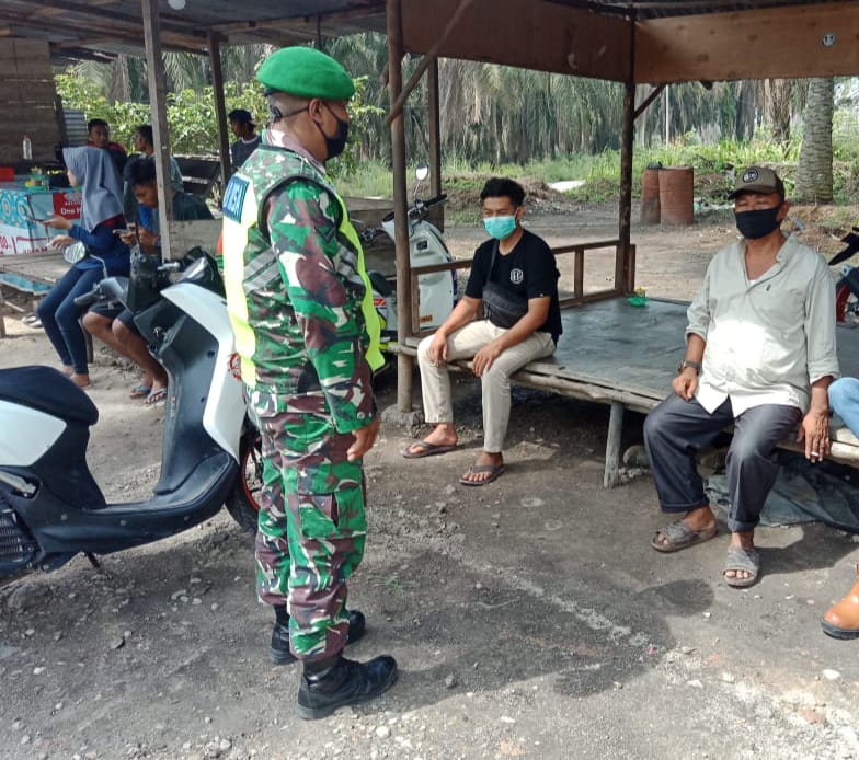 Lubuk Dalam – Babinsa Koramil 03/Siak melaksanakan sosialisasi dan Himbauan terkait tentang wabah Covid-19 di Kampung Kumbara Utama Kecamatan Lubuk Dalam Kabupaten Siak, Sabtu (12/06/2021).