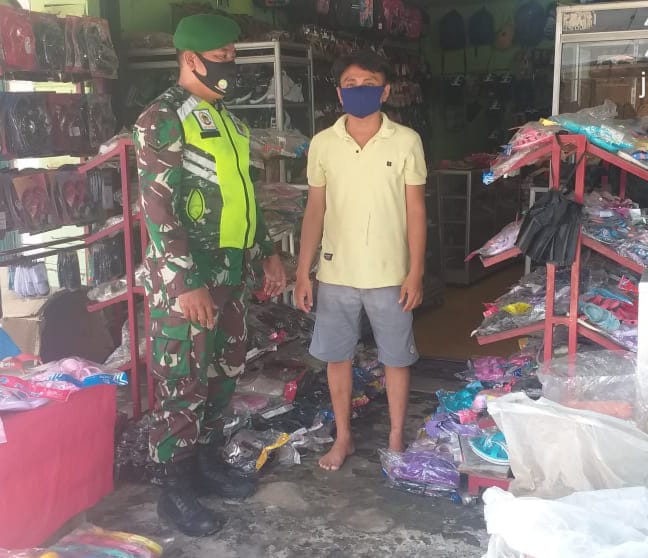 Dalam pendisiplinan yang dilakukan, Babinsa mengajak pengunjung dan penjual untuk selalu mematuhi protokol kesehatan selama melaksanakan aktifitas.