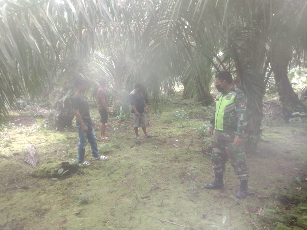 Babinsa Kampung Langkai Koramil 03/Siak Kodim 0303/Bengkalis Kopda Ardhy Bagus bersama MPA melaksanakan kegiatan patroli dan sekaligus sosialisasi tentang Karhutla kepada masyarakat yang berada di wilayah binaan, Kampung Langkai Kecamatan Siak Kabupaten Siak, Rabu (14/04/2021).