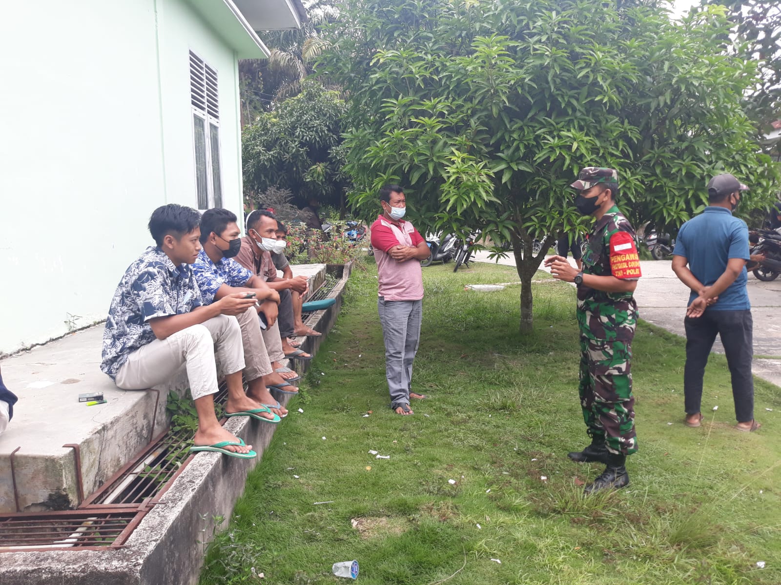 Babinsa Koramil 01/Siak Kodim 0322/Siak mengajak warga Desa binaannya tetap mematuhi prokes, saat melaksanakan komunikasi sosial (komsos) dengan warga di Kampung Jati Mulya, Kecamatan Kerinci Kanan, Kabupaten Siak, Sabtu (3/9/2022).
