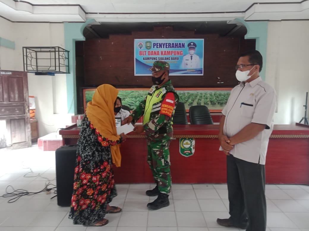 Dalam pelaksanaan pemberian BLT DK kesempatan itu, Babinsa bersama Bhabinkamtibmas Kampung Sialang Baru Serda Hariyadi melakukan pengamanan sekaligus memantau langsung pembagian Bantuan Langsung Tunai Dana Kampung (BLT DK) agar tetap aman, tertib dan lancar, serta tepat sasaran kepada masyarakat yang benar-benar membutuhkan.