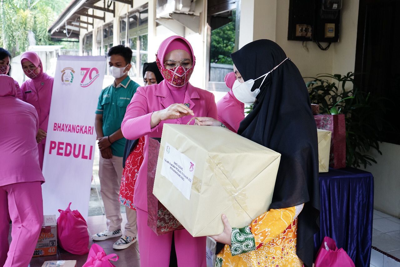 Tampak Nindya yang juga merupakan istri dari Kapolda Riau, Irjen Pol Mohammad Iqbal ini, didampingi sejumlah anggota Bhayangkari lainnya.