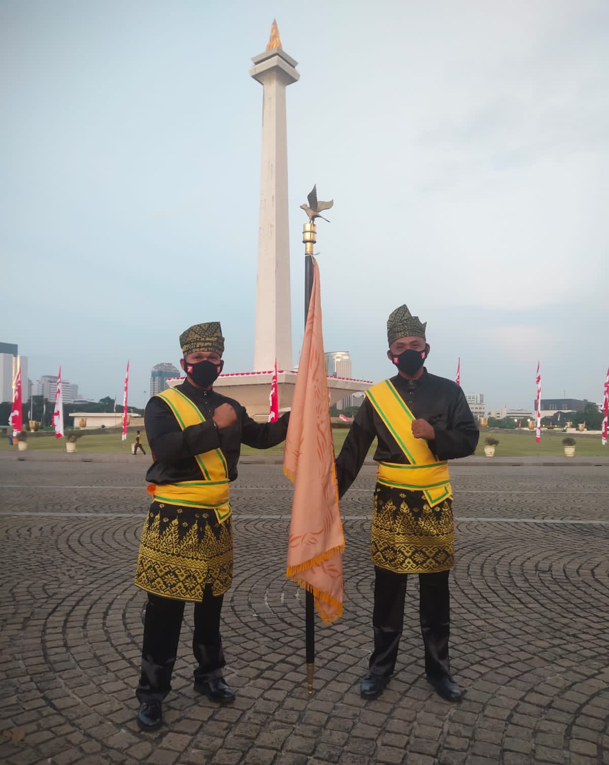 “Duplikat bendera kerajaan Siak telah diperjalankan dan Bertolak dari Bandara SSK Pekanbaru menuju Bandara Sukarno Hatta Jakarta. Dan diterima oleh Koordinator duplikat bendera Kerajaan Senusantara dari Mabes TNI”, ungkap Serka Gopardin.