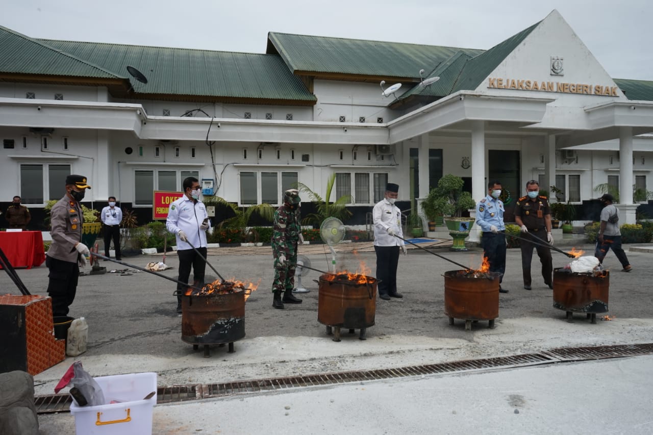 Kepala Kejaksaan Negeri Siak Dharmabella Tymbasz mengatakan, pemusnahan barang bukti ini telah memiliki kekuatan hukum tetap, berbagai jenis barang bukti yang akan dimusnahkan diantaranya Narkotika, OHARDA dan sejumah Senjata Tajam (Sajam), pelaksanaan ini merupakan pemusnahan semester pertama di tahun 2021.