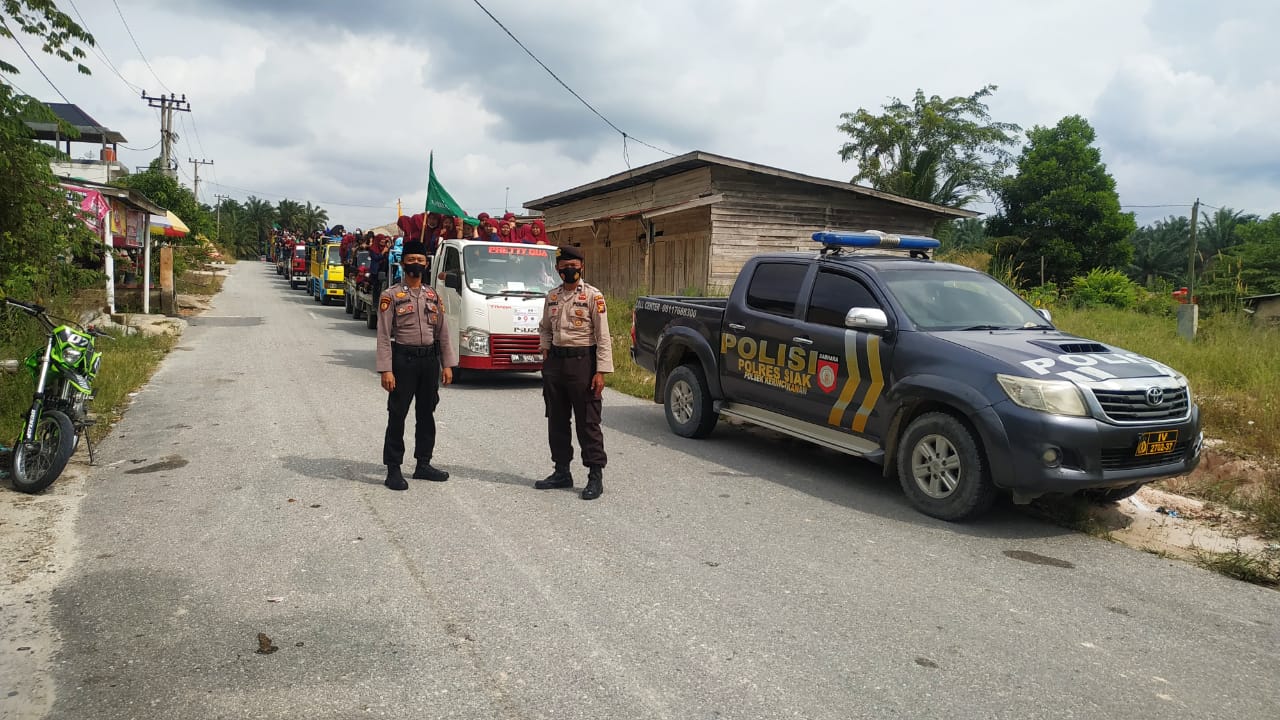 SIAK- Demi terciptannya situasi kamtibmas yang aman dan kondusif dalam pelaksanaan Harlah Nahdlatul Ulama (NU) ke 96, Kanit Shabara Polsek Kerinci Kanan melaksanakan pengamanan dan pengawalan para santri dari kecamatan Kerinci Kanan yang akan mengikuti Harlah Nu di Mesjid Islamic Center Kabupaten Siak. Sabtu, (22/1/2022) Sore.