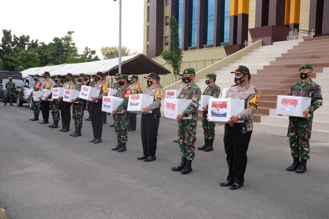 PEKANBARU- Kapolda Riau, Irjen Pol Agung Setya Imam Efendi dan Danrem 031 Wirabima, Brigjen TNI M. Syech Ismed melepas keberangkatan Bantuan Sosial sebanyak 503 paket, yang disalurkan kepada masyarakat melalui Posko PPKM pada Jumat sore (06/07/2021).