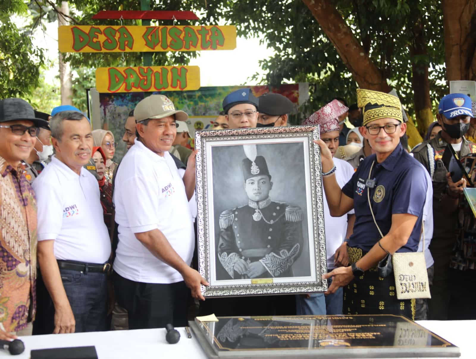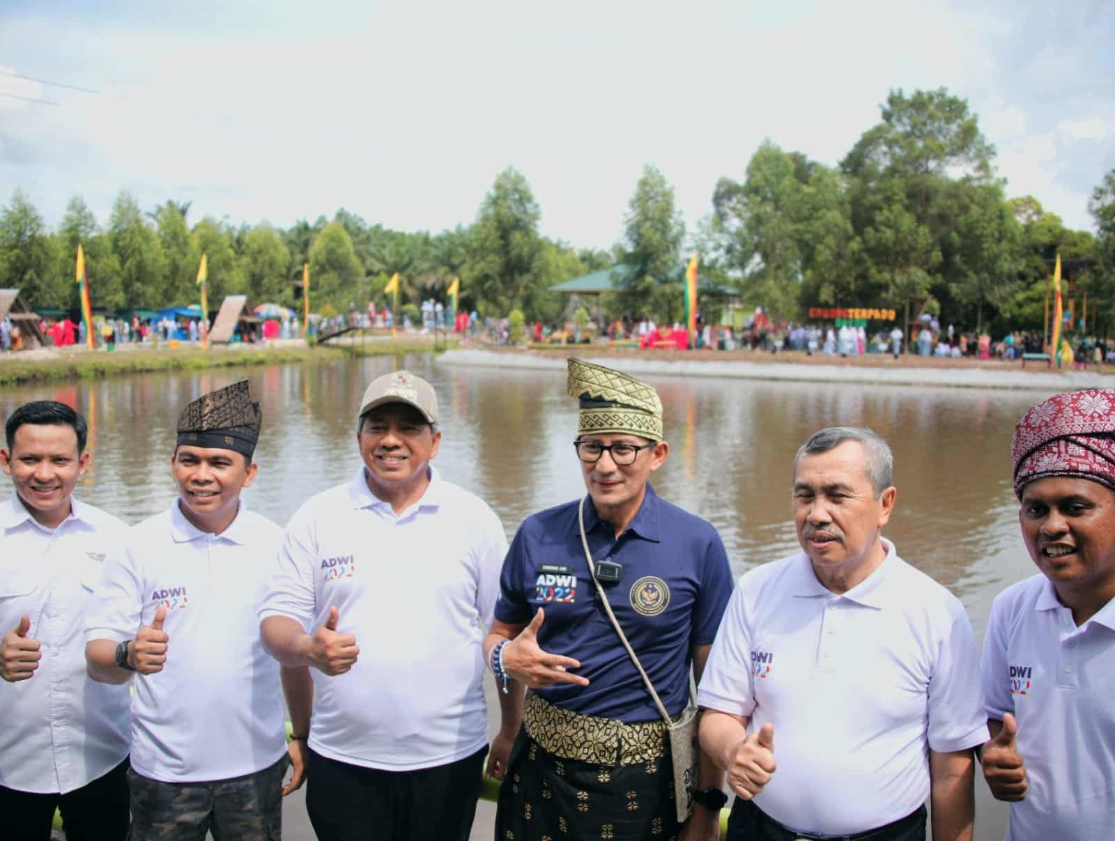SIAK-Menteri Pariwisata dan Ekonomi Kreatif (Menparekraf) Sandiaga Salahuddin Uno bersama Tim Dewan Juri Anugerah Desa Wisata Indonesia (ADWI) 2022 melakukan kunjungan atau visistasi dalam rangka peninjauan Desa Wisata di kampung Dayun, kecamatan Dayun, kabupaten Siak, Riau, Sabtu (20/8/2022).