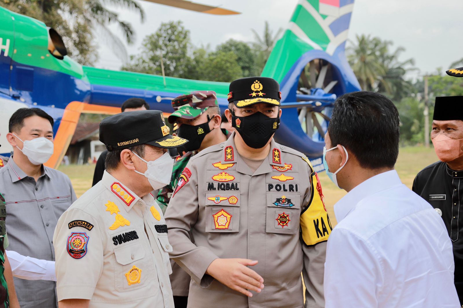 PEKANBARU – Kapolda Riau Irjen Pol Mohammad Iqbal bersama sejumlah pejabat dari jajaran Forum Komunikasi Pimpinan Daerah (Forkopimda) melakukan peninjauan ke pos terpadu di perbatasan Riau – Sumatera Utara (Sumut), di Bagan Sinembah, Kabupaten Rohil, Jumat (29/4/2022).