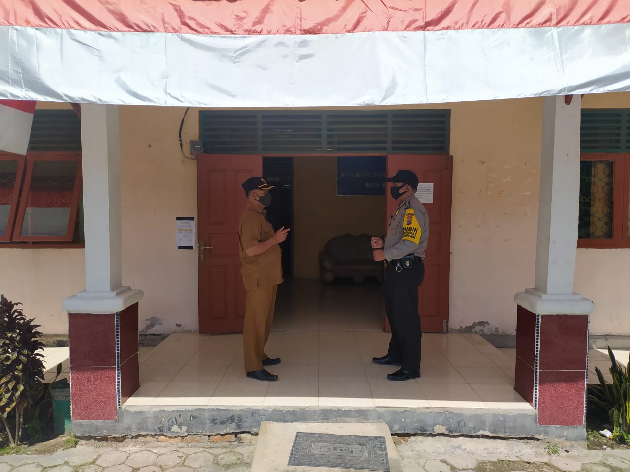 SIAK – Bhabinkamtibmas Kampung Kemuning Muda Polsek Bungaraya Brigadir Jon Hendri menyambangi kantor penghulu kampung Kemuning Muda dalam hal menyampaikan netralitas di Pilkada Siak 2020.
