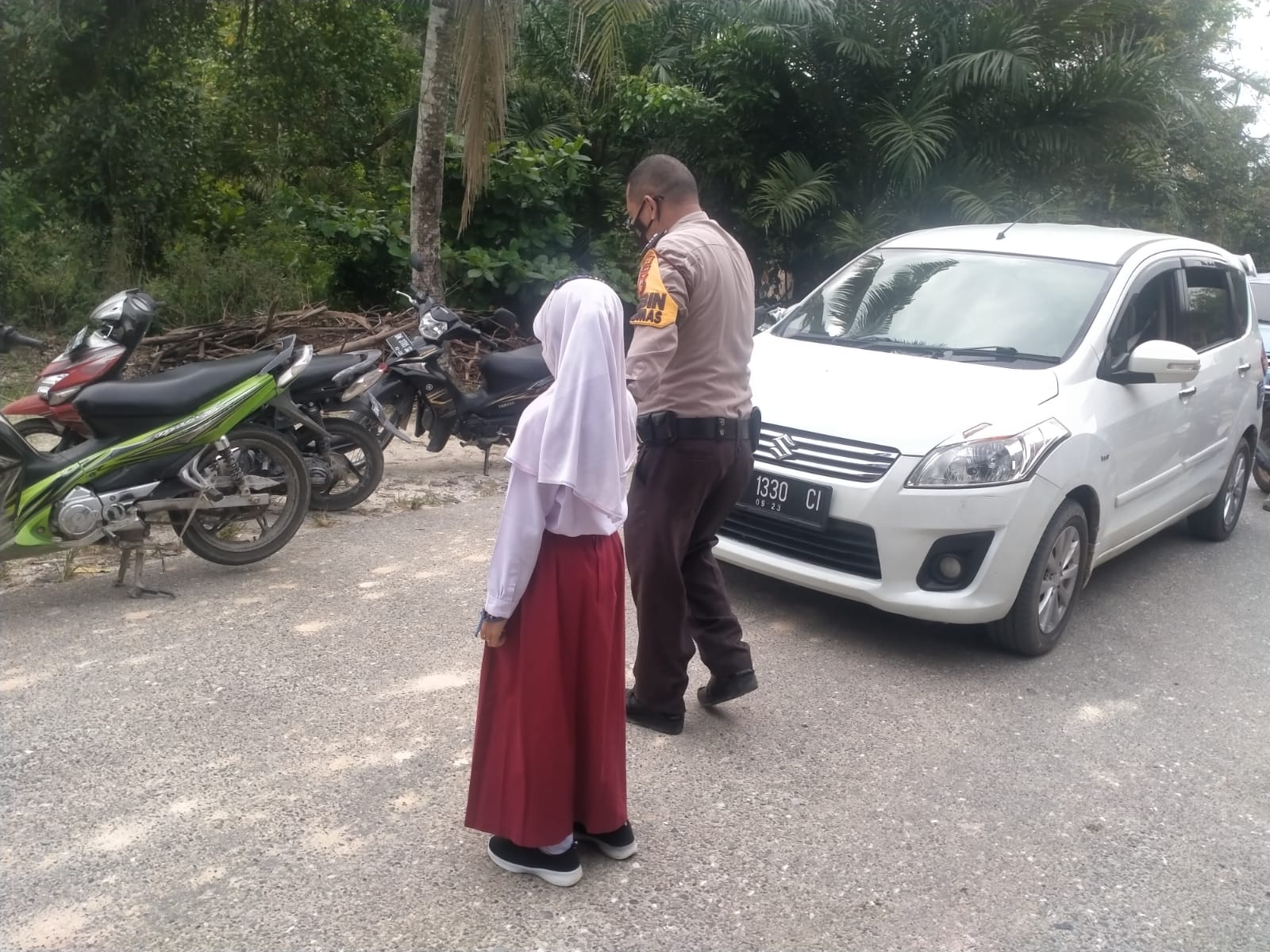 SIAK- Sebagai wujud kepedulian terhadap keselamatan anak-anak sekolah Bhabinkamtibmas kampung Simpang Perak Jaya, Polsek Kerinci Kanan, Polres Siak Aiptu Hendri lakukan kegiatan pengamanan dan pengaturan di jalan dengan membantu anak-anak sekolah menyeberangi jalan ke Sekolah Dasar Negeri (SDN 06) kampung Simpang Perak Jaya, Kecamata Kerinci Kanan, Kabupaten Siak. Senin,(15/11/2021)