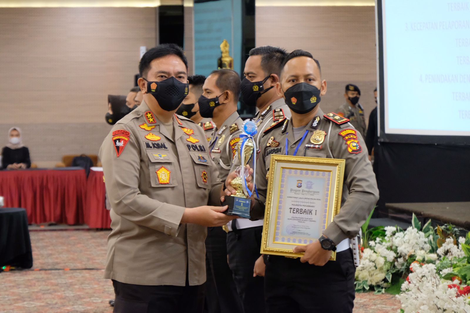 – Kategori Kecepatan Pelaporan Harian Kamseltibcarlantas Tahun 2021, terbaik I Sat Lantas Polres Bengkalis dan terbaik II Sat Lantas Polres Kuansing.