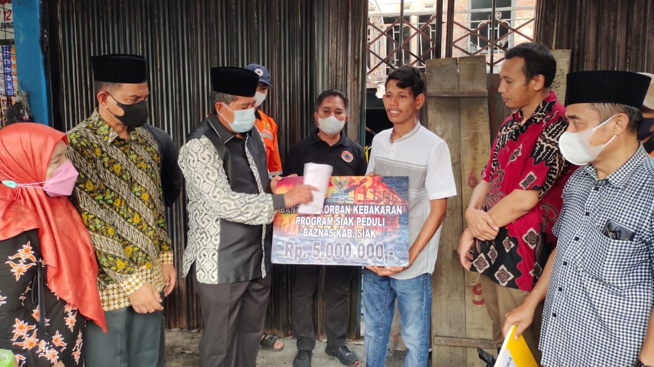 “Kami atas nama pemerintah dan pribadi, turut berduka atas musibah kebakaran yang menimpa warga kita yang terjadi pada jum’at malam. Terhadap dua orang korban akibat musibah kebakaran, kita doakan semoga Khusnul khatimah. Kunjungan kami ke sini menyerahkan bantuan berupa uang dari BAZNAS Siak dan bantuan uang duka dari Pemerintah Kabupaten Siak,”kata dia, Sabtu (16/10/2021) petang.