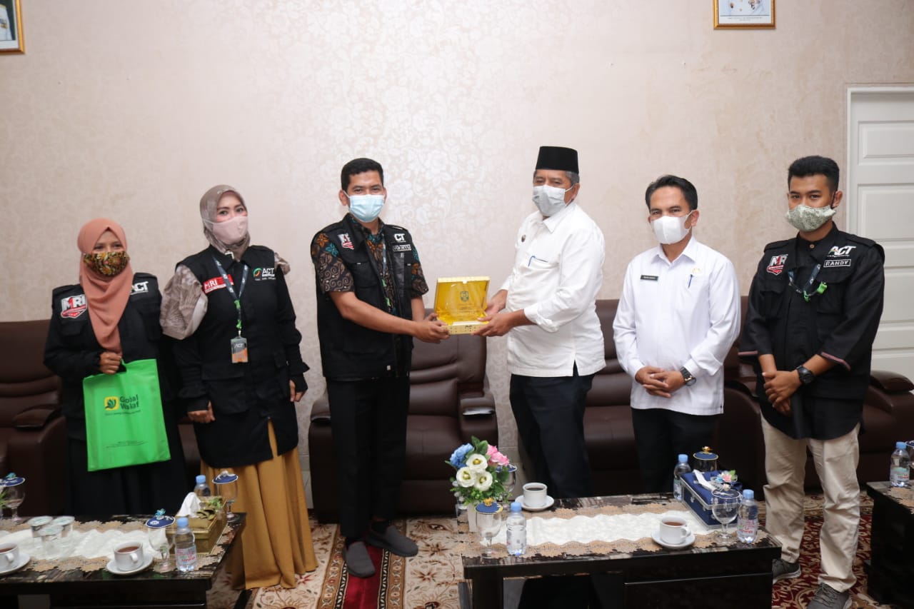 SIAK- Bupati Siak Alfedri di rumah dinasnya menerima kunjungan silaturahmi Tim Aksi Cepat Tanggap (ACT) Provinsi Riau, Rabu (07/07/2021). Turut hadir Kadis Sosial Kabupaten Siak Wan Idris dan tim relawan Siak.