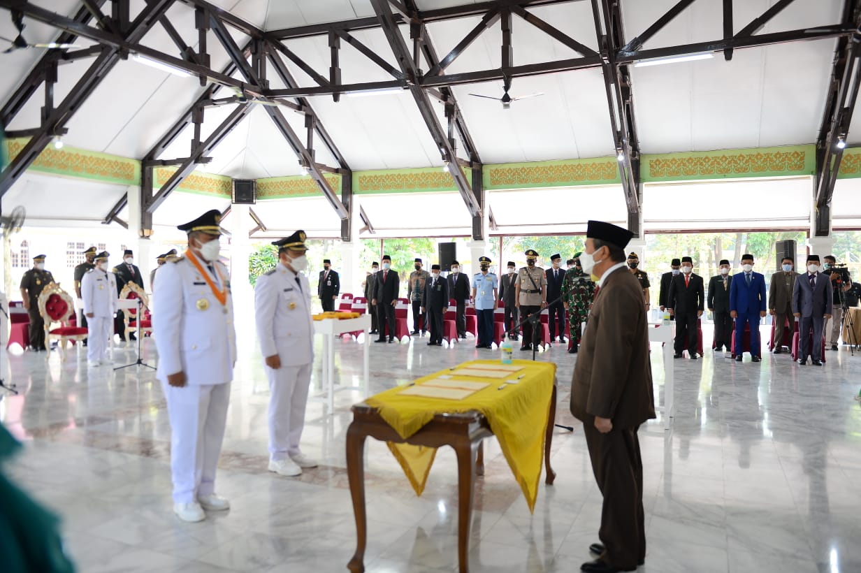 SIAK- Gubernur Riau Syamsuar melantik Drs. H. Alfedri, M.Si dan H. Husni Merza, BBA,MM, sebagai Bupati dan Wakil Bupati Siak, hasil Pilkada Serentak yang digelar Tahun 2020 lalu. Prosesi pelantikan yang dilaksanakan bersamaan dengan pelantikan Bupati dan Wakil Bupati Rokan Hulu tersebut berlangsung di Balai Pelangi, kompleks Gedung Daerah Provinsi Riau Pekanbaru, sekitar pukul 09.15 WIB Senin pagi (21/6/2021) dengan standar protokol kesehatan (Prokes) ketat serta dengan jumlah undangan terbatas.