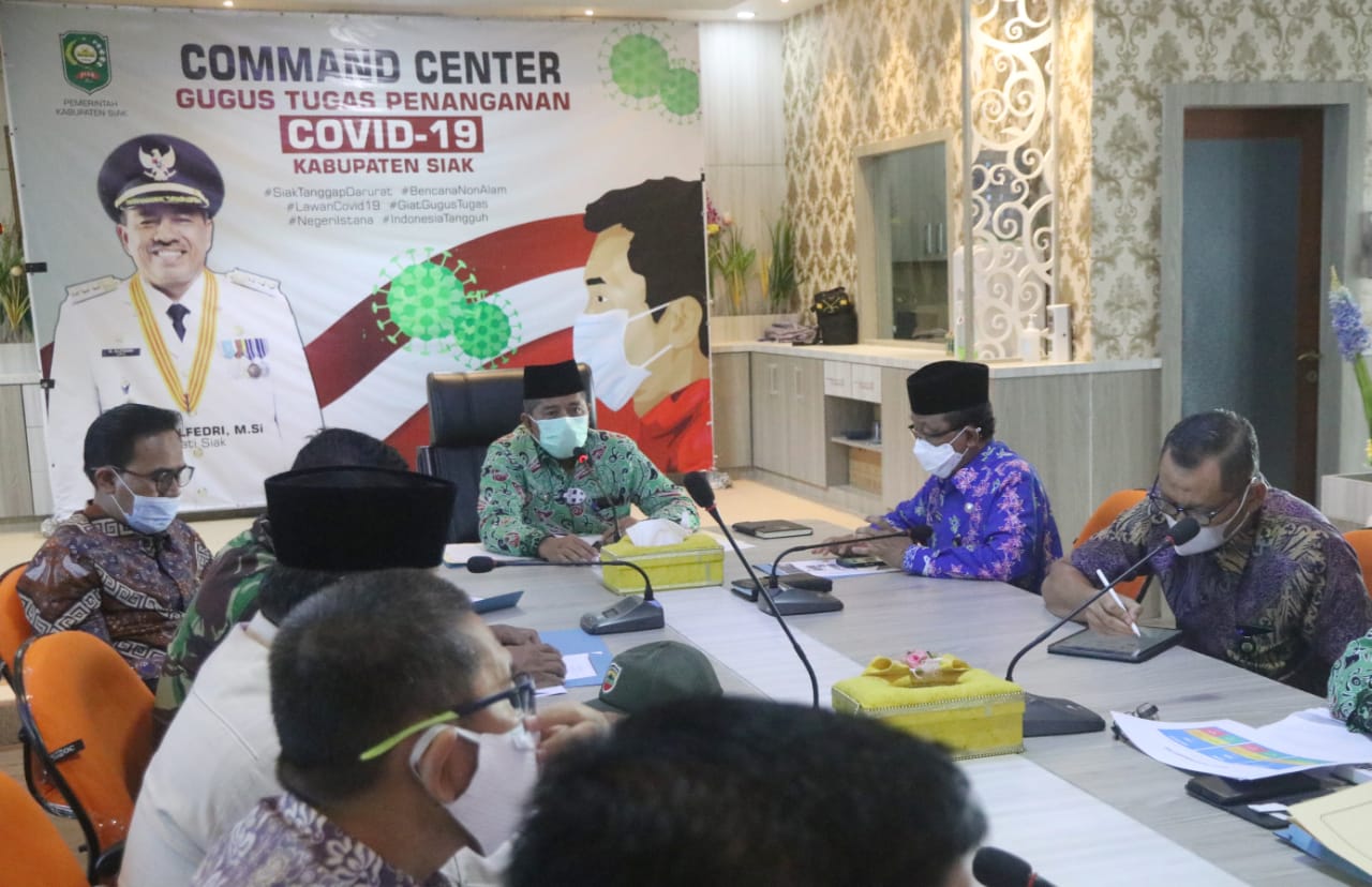 Bupati Siak Alfedri Pimpin Rapat Evaluasi Penanganan Penularan Covid-19 di Kabupaten Siak